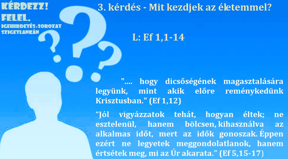 on 3. kérdés – Ef 1,12 – Ef 5,15-17 – Mit kezdjek az életemmel?