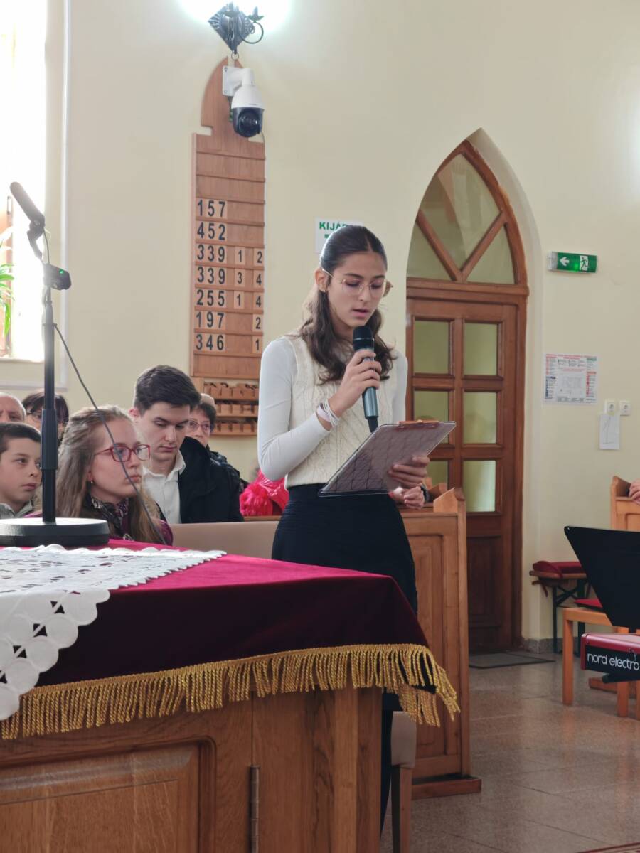 2024. november 17-én délelőtt a Deák (Titulescu) téri református templomban Kocsis Leila beosztottlelkész imájával és gyermekistentisztelettel kezdődött az alkalom, valamint Sebő Kata zongorajátékában Beethoven Holdfény szonátája hangolt a prédikációra. Rácz Ervin lelkipásztor a Bírák könyve 9. része alapján hirdette az Igét. Jótám meséje az Ószövetség két példázata közül az egyik, a másik Nátán próféta példázata a szegény ember egy báránykájáról. A királyt választó fákról szól annak a Jótámnak a példája, aki azt követően mondja el a mesét, miután féltestvére Abimélek az összes többi féltestvért (68-at) megöletett egy kövön. Szörnyű tett, amit nem lehet szó nélkül hagyni. Ha az olajfa, a fügefa és a szőlő nem vállalja a vezetés feladatát, majd a galagonyabokor készséggel vállalja. A gőghöz és a butaságainkhoz, valamint torz ideológiákhoz való ragaszkodás önpusztító, ezt látjuk az önjelölt király Abimélek élettörténetéből. A felelősség vállalása fontos és az is, hogy mindenki a maga helyén jó gyümölcsöt teremjen. – mondta igehirdetésében a lelkipásztor.