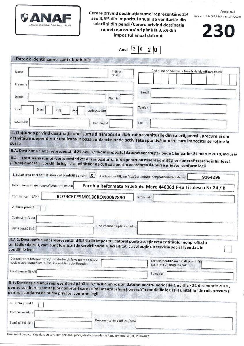 Szeretettel kérjük, ajánlja adója 2 illetve 3,5 százalékát a Szigetlankai Református Egyházközségnek.