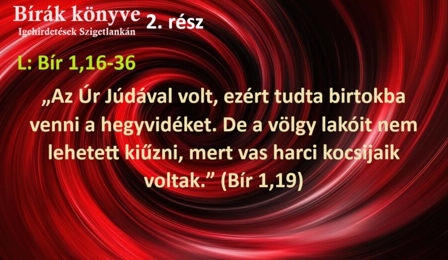 “Az Úr Júdával volt, ezért tudta birtokba venni a hegyvidéket. De a völgy lakóit nem lehetett kiűzni, mert vas harci kocsijaik voltak.” (Bír 1,19) Az Úr nélkül az életutunk egy nagy káosz, de ha vele kezdjük napjainkat és Őt dicsőítjük, akkor Ő úrrá lesz a felforduláson. Ezt tanulhattuk meg első ízben a Bírák könyvéből. Ez […]
