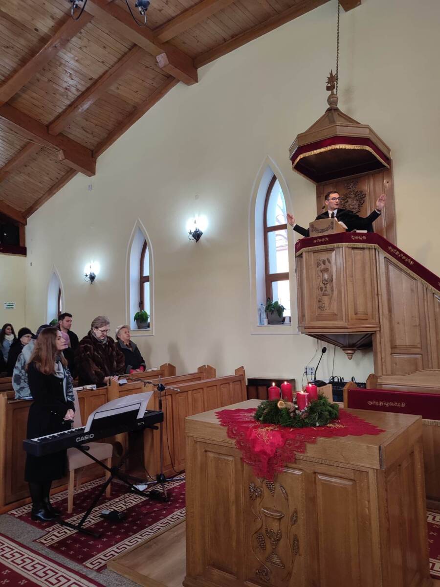 Rácz Ervin házigazda lelkipásztor kifejezte abbéli örömét, hogy jól néz ki az Egyház jövője, ha a jelenben ilyen ügyes és áldott teológiai hallgatói vannak. A gyülekezet nevében megköszönte az ifjú teológus szolgálatát, áldást kérve tanulmányaira, szolgálataira és életére. A lelkipásztor ismertette a karácsonyi ünnepkör programját is. Hétfőtől péntekig minden este 18 órától bűnbánati istentiszteletek lesznek. Szombaton két szentesti alkalomra is várják a híveket, 17 órától és 19 órától. Ünnep első- és másodnapján is úrvacsorai közösségben lehetnek együtt a hívek 10 órától, mindkét napon 17 órakor lesz a délutáni alkalom. Az év utolsó napján 17 órától adnak hálát, az év első napján pedig 10-kor és délután 5-kor várnak mindenkit.