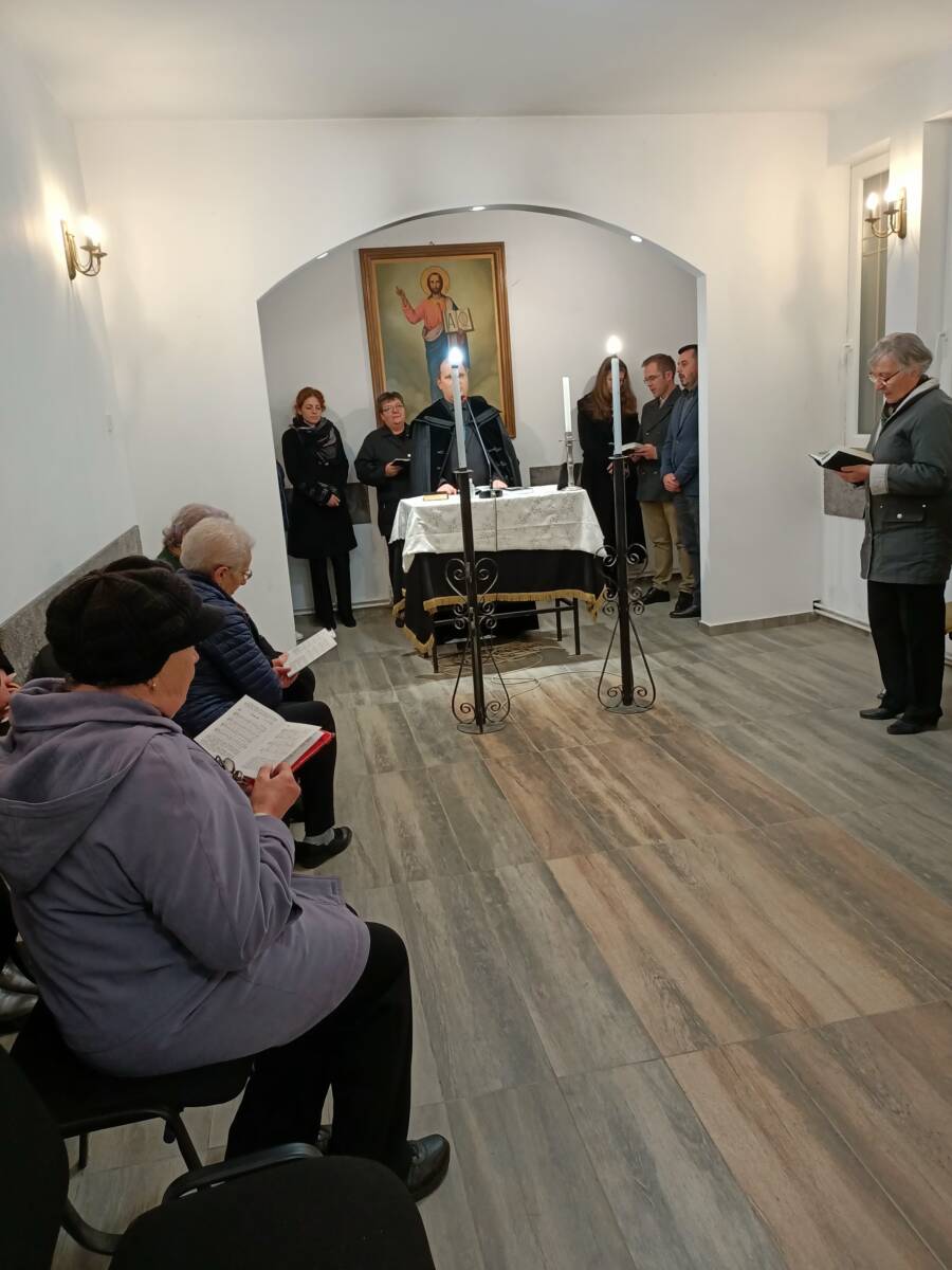 Rácz Ervin szigetlankai lelkipásztor a fenn idézet Ige alapján arról szólt, hogyan tudunk továbblépni a gyász idején. Jézus nemcsak a világosságban van velünk, hanem behívható a sötétségbe, mármint a gyász nyirkos vermébe. Ezért első lépésként a természetes tagadás ellenére is a halál valóságának a tényét fogadjuk el. Vele szembenézhetünk a veszteséggel és vigasztalódva emlékezhetünk az elhunytra. Közben új identitásunk formálódik, mivel új szerepeket vagyunk kénytelenek betölteni. Értelmet és célt találhatunk Isten segítségével, és a támaszt is bátran elfogadhatjuk szeretteinktől, közösségeinktől, akik együtt éreznek velünk. Közben Isten? Ő velünk van, hall minket, velünk együtt sír, mellénk ül a porba és Ő segít váltani a hamut fejdisszé, a fátyolt illatos olajjá és a csüggedést öröménekké. Értelmezhetjük és élhetjük életünket a feltámadás fényében.