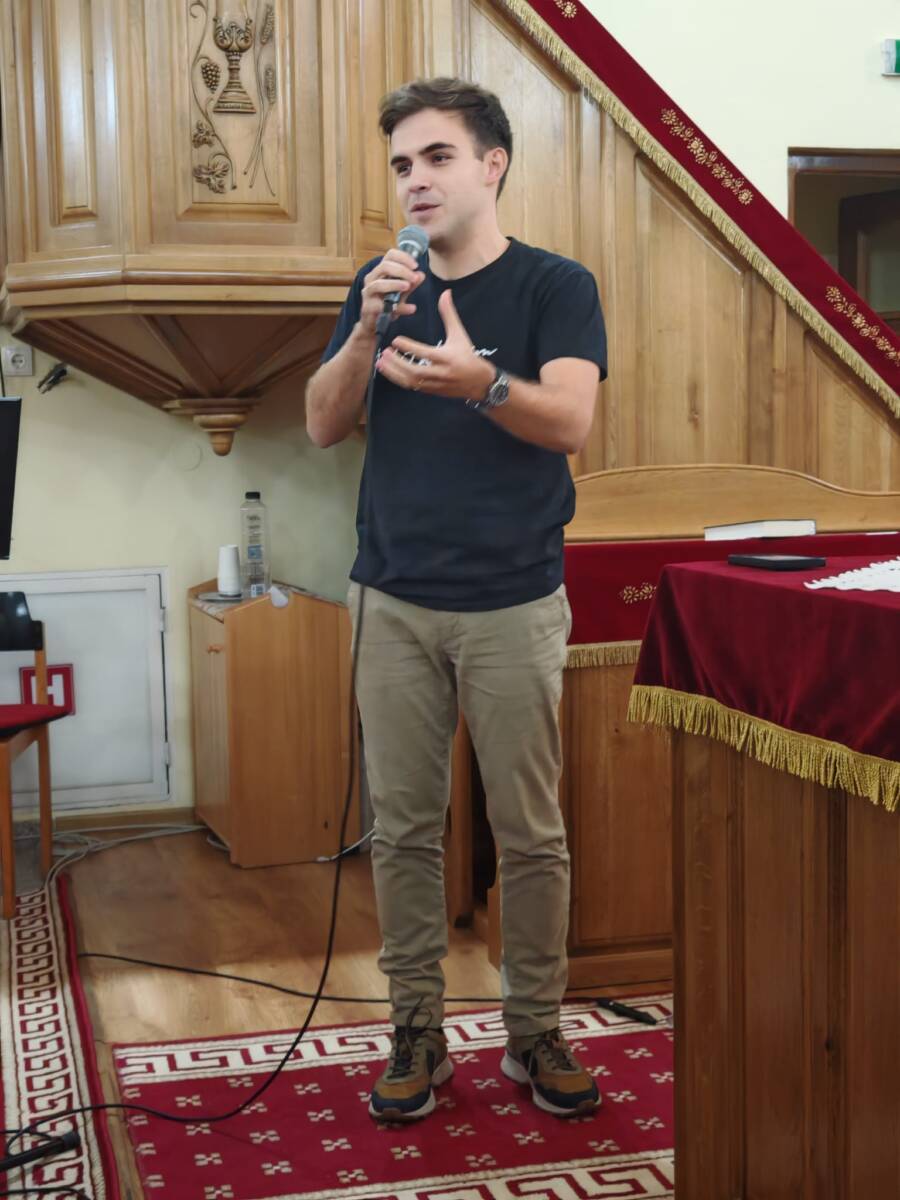 Írd át álmaim feliratú pólóval állt a mikrofon elé Jakab István az Erdélyi IKE egykori alelnöke, aki bemutatkozásként bizonyságot tett arról, hogyan élte meg a többszöri karrierváltás az életútja során. (27 évesen visszatekintve) A fiatalok felé ez alkalommal az online misszió lehetőségeiről szólt. Egy népszerű Instagram és Facebook oldalt szerkeszt Hallgatlak néven, tehát végzi a missziót. Rövid, de tartalmas előadásában a telefonozás negatív hatásairól beszélt. Ösztönözte a hallgatókat arra, hogy az online eszközöket értelmesen használják, miközben tudatosak maradnak és kapcsolatban maradnak Istennel. Az online misszió valamire elég és valamire nem, a kifutása mindig személyes, hús-vér kapcsolat kell legyen. A megoldás ebben a nagy zavarban a kapcsolódás, a közösség és a csend. Eric Floberg gondolatával zárta az előadást: “Unatkozz és alkoss!” Ez sem a saját álmaink és nem a fiatalok álmai alapján elképzelt üzenet, de szükségünk van rá, hogy Isten ezeket a rémálmokat átírja. (szerk. megj.)