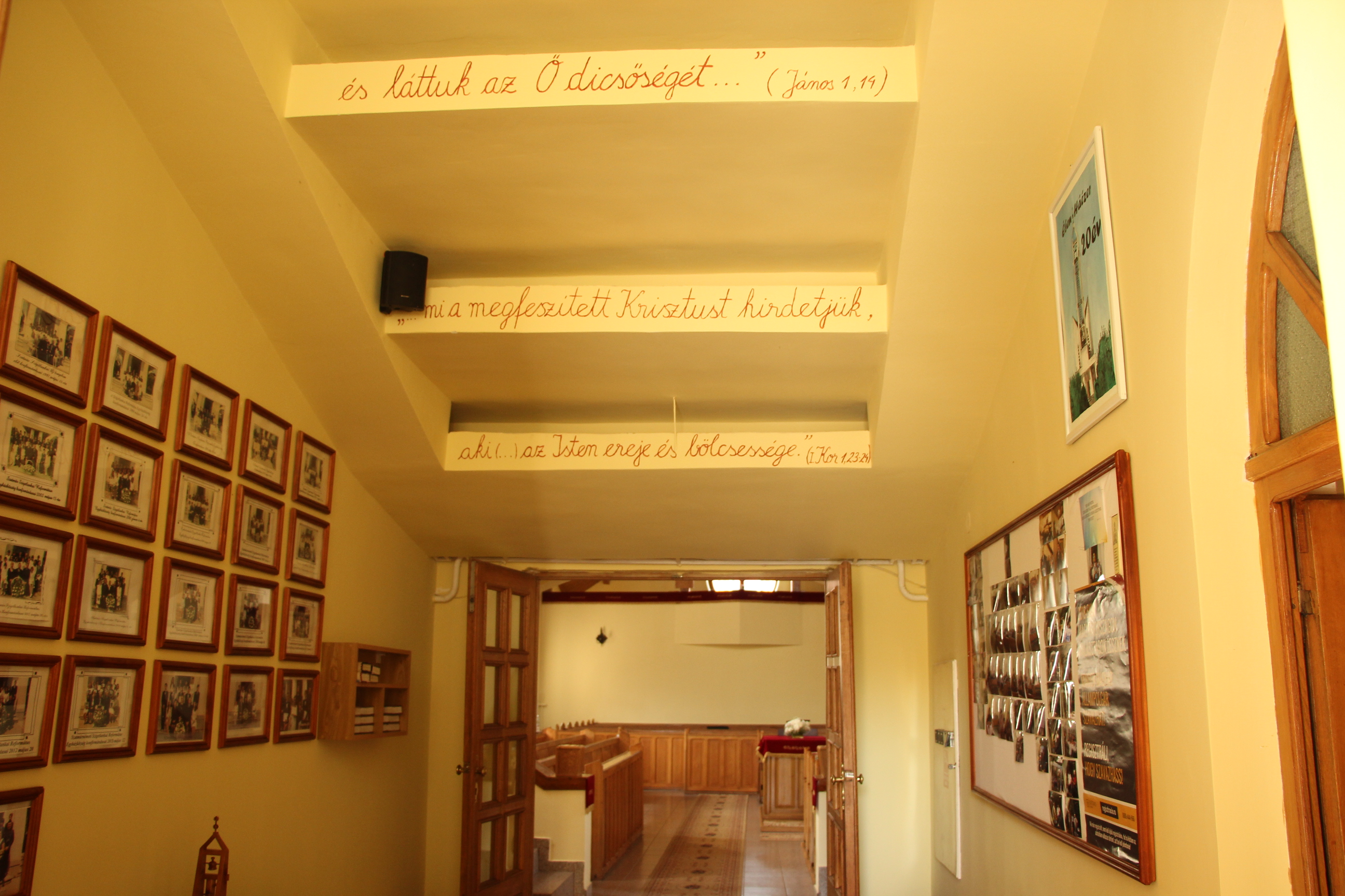 Kiss József egyházmegyei főjegyző a Jánosi Anikó gyülekezeti tag által készíttetett emléktábla leleplezésénél a rajta található igeszakasz alapján mondott néhány gondolatot: „Az igaz ember hitből él” (Róma 1,17) Az ifjak pedig énekelték a templom előtti sötétben: „Hegyen épült város vagy, Hát hadd lássák fényed. A világ vár, hogy megoszd végre Élő reményed.”