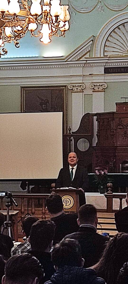 A csendesnapra hivatalos volt Rácz Ervin Szatmár-szigetlankai református lelkipásztor, a Királyhágómelléki Református Egyházkerület generális direktora. Örömmel találkozott a diákokkal, főként királyhágós, azonbelül szatmári teológusokkal, ismerősökkel, és mindazokkal, akik az elmúlt években Szigetlankán szolgáltak legátusként. Rendbontó és sokkoló igehirdetésében Ezékiel próféta feleségének haláláról beszélt: “”Így szólt hozzám az Úr igéje: Emberfia! Én most hirtelen halállal elveszem tőled azt, aki neked kedves, de te ne gyászold, ne sirasd, könnyedet se hullasd! Csak halkan sóhajtozz, ne gyászold úgy, ahogy a halottakat szokták! Tedd föl a fejdíszedet, és kösd a lábadra sarudat, ne takard el a bajuszodat, és ne edd a gyászolók kenyerét! Elmondtam ezt reggel a népnek; estére meghalt a feleségem. Másnap reggel a kapott parancs szerint cselekedtem.” (Ez 24,15-19) Az igehirdető nem hagyta ki az Igéhez kapcsolódó személyes vonatkozását sem, hiszen éppen aznap, amikor prédikált volt három éve annak, hogy az ő felesége is elhunyt. Milyen életkörülmények között kell szolgáljon egy lelkipásztor? A prófétasors vonzó, mert tisztelet övezi, és vannak olyan élethelyzetek, amikor ez büszkeségre ad okot. De fel kell menni a szószékre akkor is, amikor a az igehirdető személyes életében nincs minden rendben, akkor is, amikor megpróbáltatásokat kell elszenvedjen. Sőt az Ige sokszor az igehirdető életét használva is üzen, hiszen rajta keresztül szól, hitelesen, életszerűen, életszagúan. A fenti Ige azt üzeni, van másnap. Az élet előrefelé megy és mindig jó ezt megélni. És lesz majd egy másnap, aminek a fényében jó leélni egy egész életet. Ennek a fényét terjeszteni a legnagyobb kiváltság.