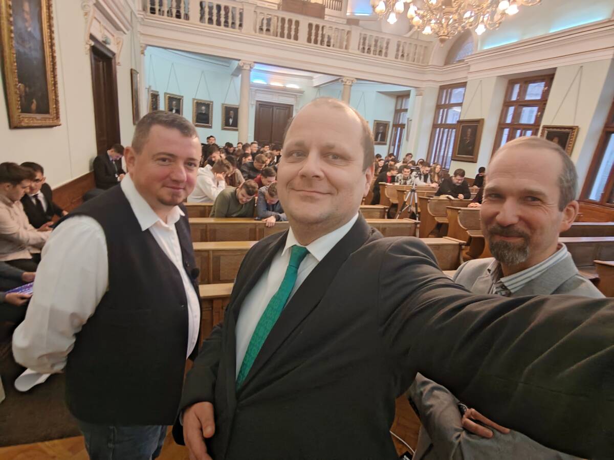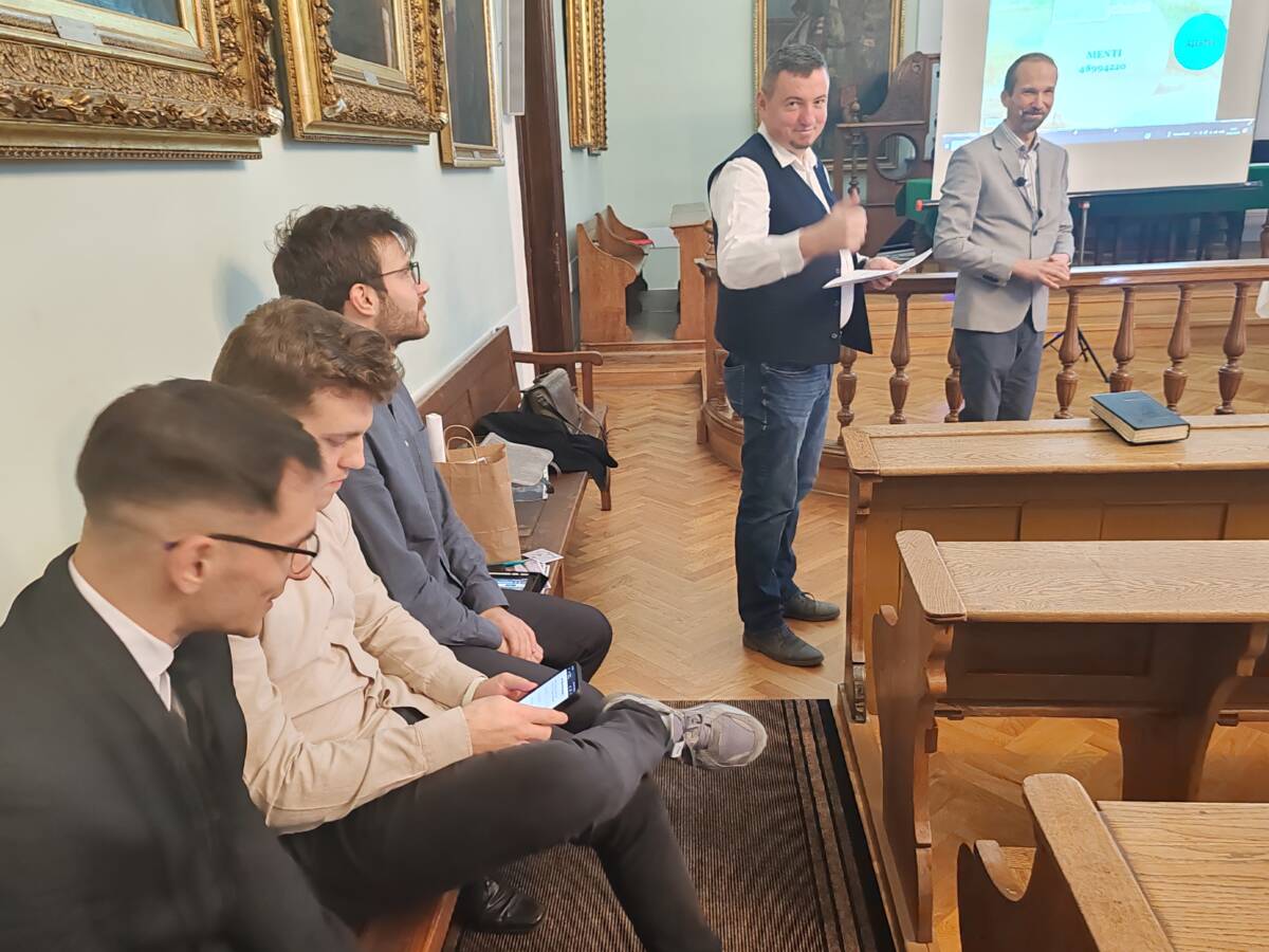 Egyébként az igehirdető volt évfolyamtársai tartottak előadást aznap a teológusoknak, volt tehát egy mini-évfolyamtalálkozó is, 2007-es kiadású, kibocsátású. Nagy Gábor és Pap Ákos lelkipásztorok arról szóltak a teológiai hallgatóknak, hogyan készülnek együtt immár másfél évtizede, szinte minden vasárnapra, a délelőtti istentiszteletre úgy, hogy kilométerek választják őket el egymástól. Érdekes volt hallani a prédikációra való készülés ily módszerét.