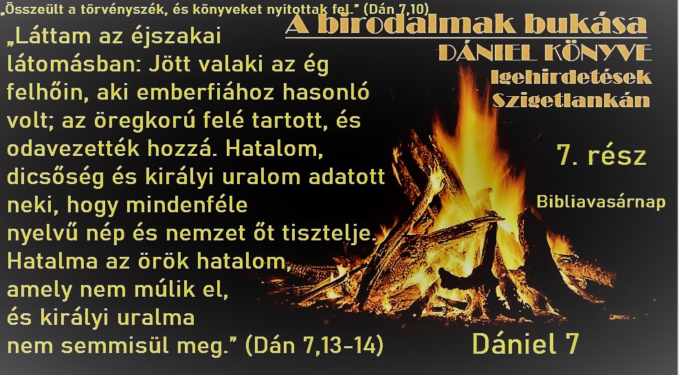 Jönnek a nehezen érthető részek a Dániel próféta könyvében és nem akarok itt rögtön az elején megingatni senkit a következő vasárnapi istentiszteletekre való eljöveteltől, sőt inkább szeretnék még nagyobb figyelmet kérni ezeken az istentiszteleteken, mert míg az első 6 fejezetben Dániel könyvében ilyen, Pál apostol megfogalmazásában, tejnek itala adatott elénk, most jön a kemény eledel, hogy ha fejlődni akarunk, akkor kell a kemény eledel is. Kell a tartós élelmiszer, kell a lelki étel, ami tényleg erőt ad nekünk. (Zsid 5,12-14) Persze nem szeretnék most se ebbe belebonyolódni ezeknek a nagyon furcsa képeknek a magyarázatába.
