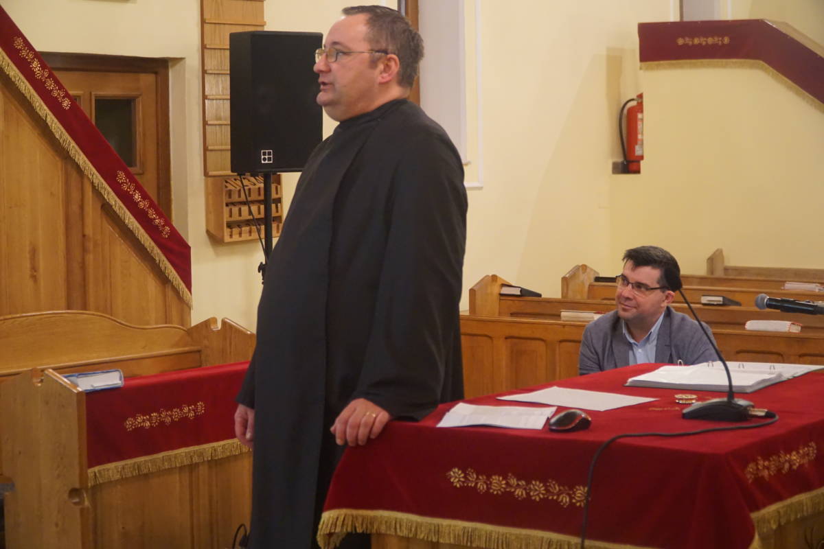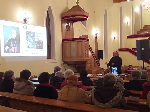 A második világháború után Romániában is berendezkedő kommunista hatalom valláspolitikájában az első pillanattól kezdve követni kívánta a szovjet példát. Ennek egyik legfontosabb eleme a görögkatolikus egyház felszámolása volt. – mondta Pallai. Az egyházakat totális ellenőrzés alatt tartó kommunista vezetés nem tűrhette, hogy olyan vallási közösségek is működjenek az országban, melyek vezetői az ellenséges nyugaton éltek. Mivel a görögkatolikus egyház egyik legfontosabb jellemzője a római pápához való kötődés, ennek felszámolása az elsődleges valláspolitikai célok közé került. A felszámolás módja az unió fölmondása és a görögkatolikus közösségek erőszakos egyesítése az ortodox egyházzal egy erővel és megfélemlítéssel megrendezett “zsinaton”. Példaként az ukrán görögkatolikus egyház 1946-ban levezényelt erőszakos felszámolása szolgált. Nem sokkal később Romániában is hasonló kegyetlenséggel vitték keresztül a görögkatolikus egyház megsemmisítését. Ebben az alattomos küzdelemben a kommunista hatalom elsődleges célpontjai a püspökök voltak. 1948. október 29-ére virradóra hét görögkatolikus főpásztort tartóztattak le törvénytelenül. A letartóztatás, majd pedig a szűnni nem akaró kihallgatások és kínzások arra irányultak, hogy a megtört püspökök tagadják meg katolikus hitüket és csatlakozzanak “önként” az ortodox egyházhoz. A kommunista hatalomnak mindenképpen szüksége lett volna legalább egy püspökre, akit felhasználhattak volna a görögkatolikus egyház felszámolásához megalkotott színjátékhoz. Azonban a kínzások és a fenyegetések mellett hiába ígértek a püspököknek vezető szerepet az ortodox egyházban, jó pásztorként mindannyian kitartottak a Rómához való hűségben. Vállalták a kínzásokat és – ha kellett – elfogadták a halált. Példájukkal nemcsak a korabeli görögkatolikus egyház híveit erősítették meg, hanem napjainkban is útmutatóként és világító fáklyákként szolgálnak: Vasile Aftenie (1899 – 1950), Valeriu Traian Frentiu (1875 – 1952), Ioan Suciu (1907 – 1953), Tit Liviu Chinezu (1904–1955), Ioan Bălan (1880–1959), Alexandru Rusu (1884–1963), Iuliu Hossu (1885–1970). Az előadó beszélt még egyháza sajátosságairól és a jelenlegi helyzetéről. Fontos volt hallani mindezeket a református híveknek, mivel sokan vegyescsaládban éppen görögkatolikusokkal élnek.