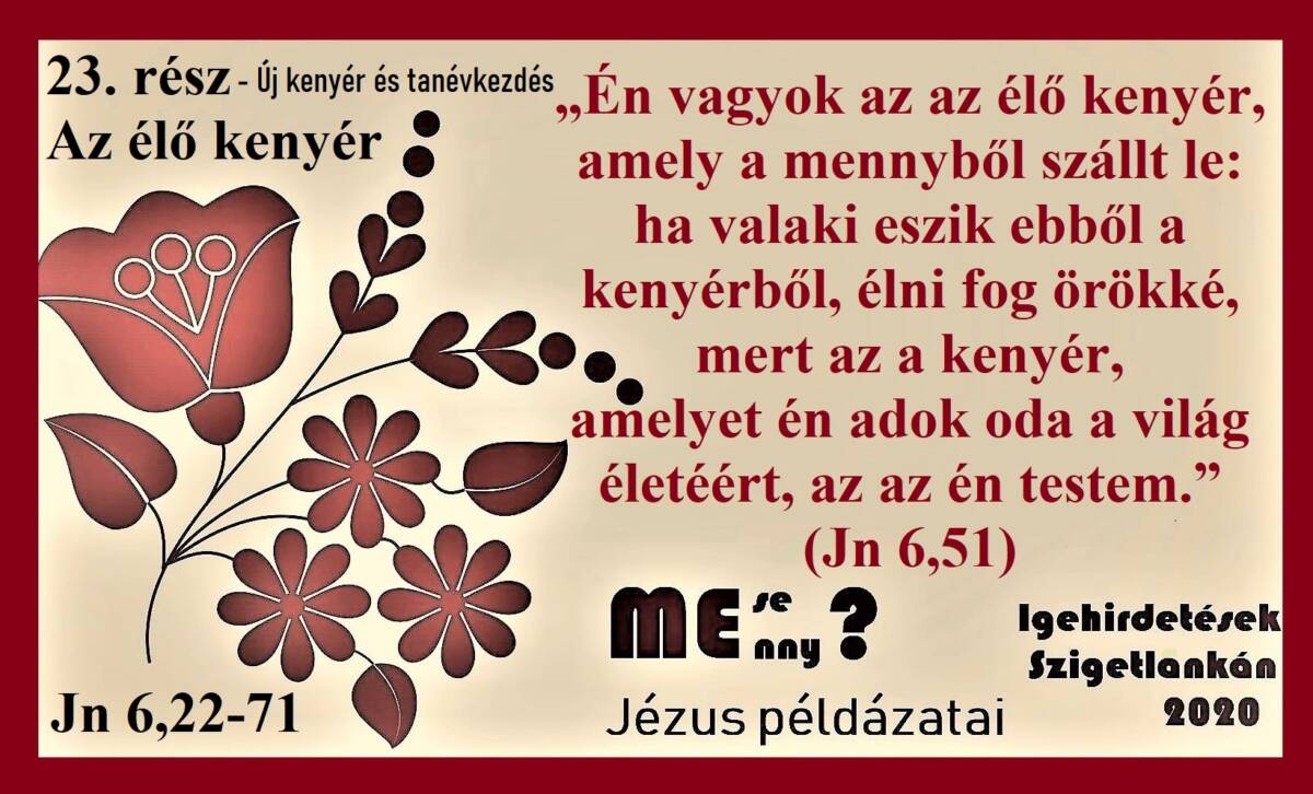 Igehirdetések Szigetlankán – Jézus példázatai – 23. rész – Az élő kenyér – Új kenyér és tanévkezdés – Jn 6, 22-71